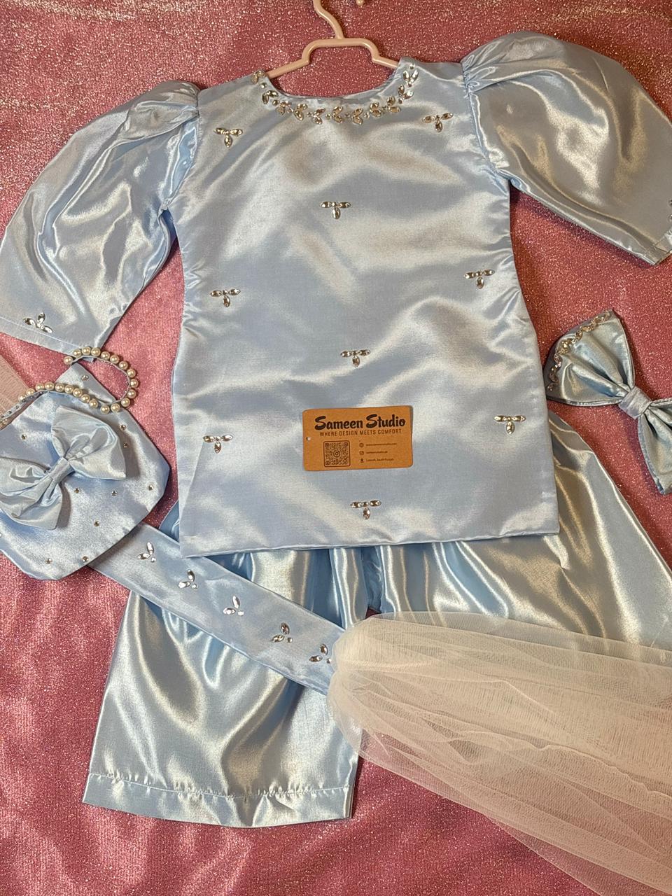 Elegant Kids Eid Outfit – Silky Line 4-Piece Festive Set